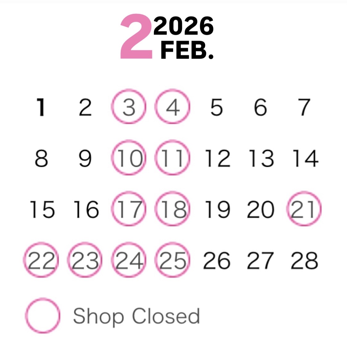 2/21〜23臨時休業