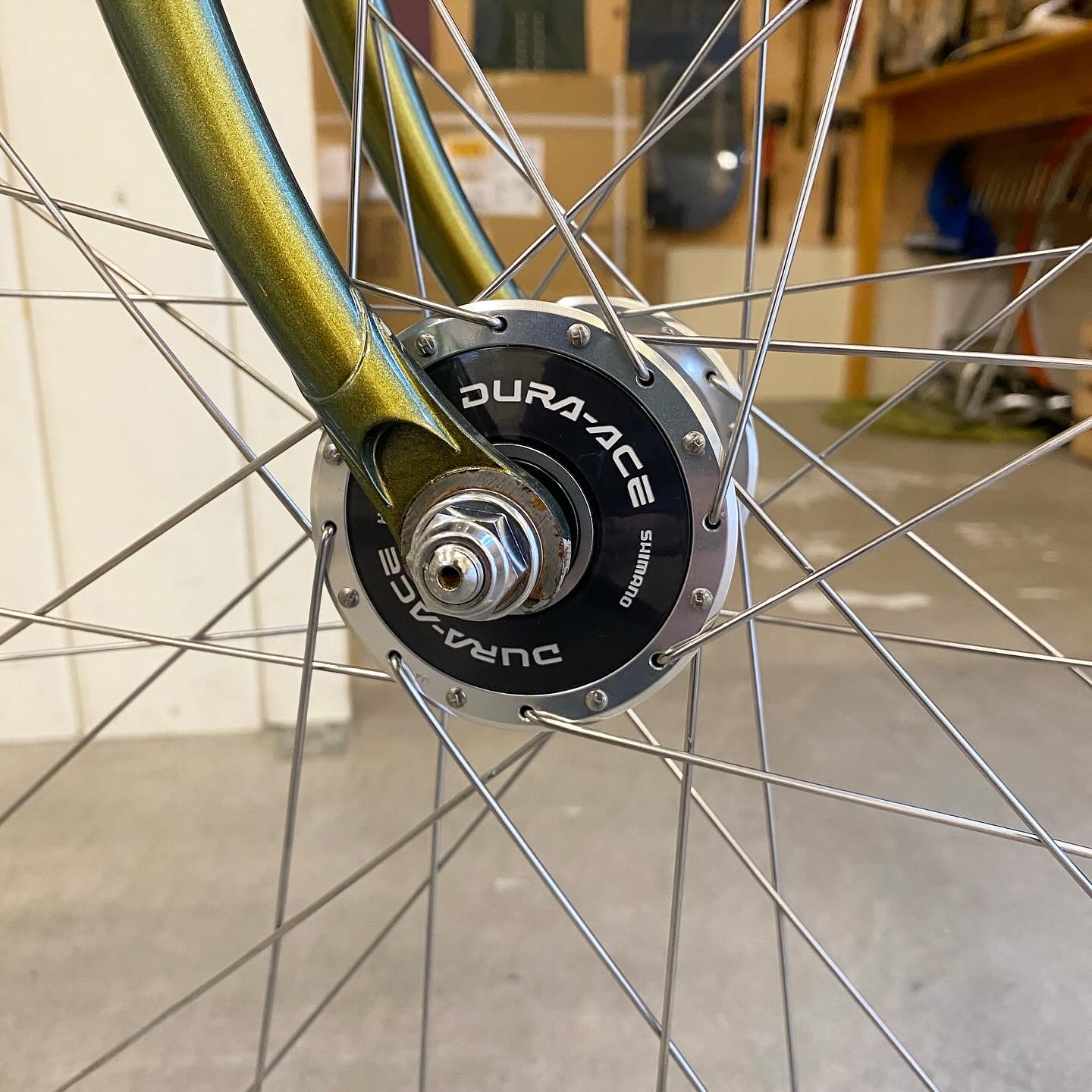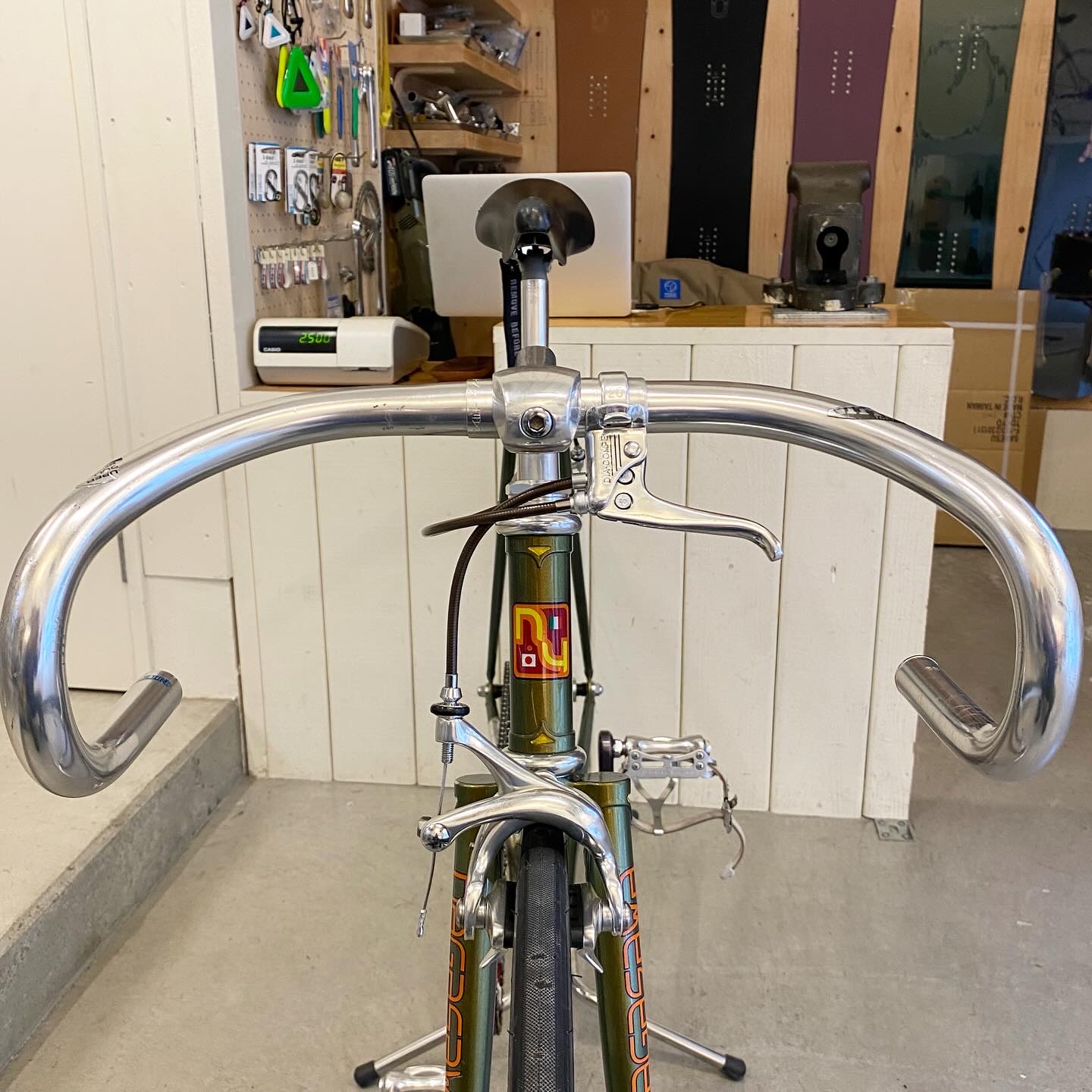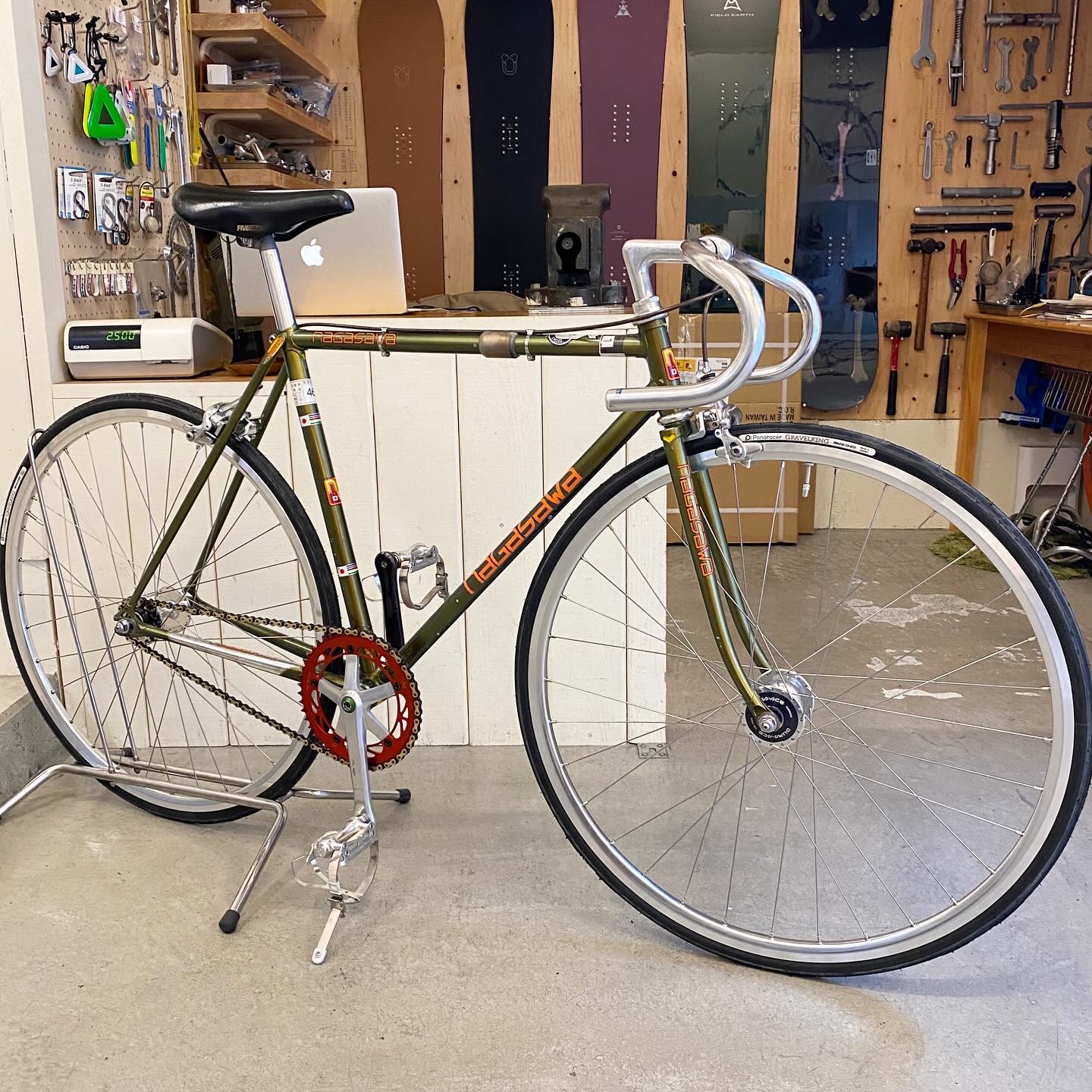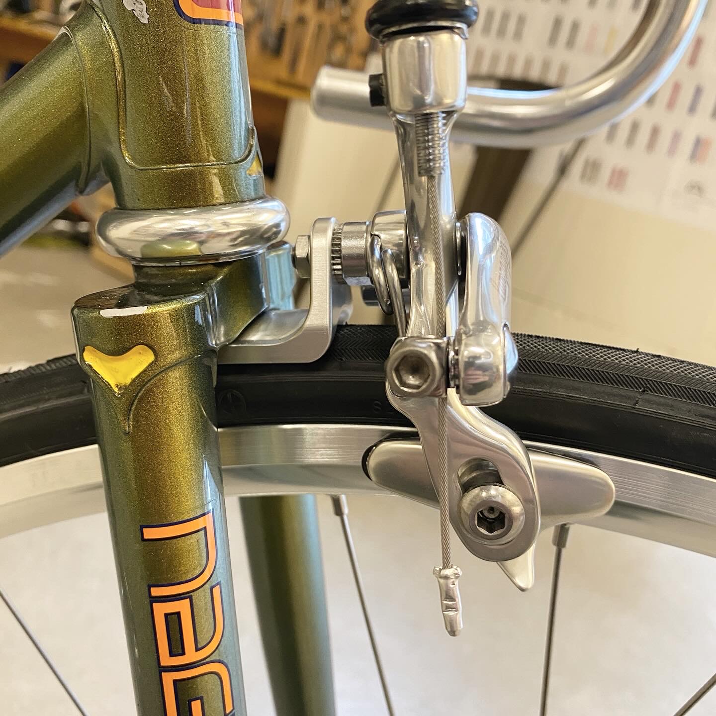お客様持ち込み完成車ピストバイクのブレーキ取り付け、ホイール交換など、カスタムのご依頼いただきました♩
